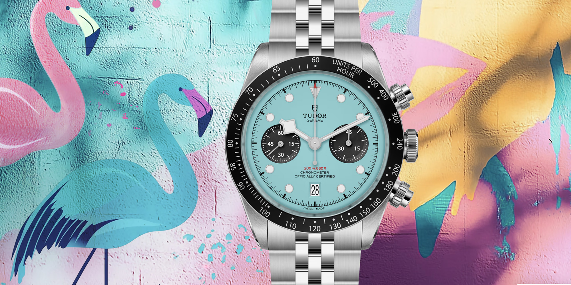 January 27, 2025 – The world seemed a bit back to front last week when a new Tudor Black Bay Chrono started appearing on the wrists of Tudor ambassadors. Blink and you’d be forgiven for thinking it was a Tiffany dial, a colour almost guaranteed to get the watch world excited and the cash register ringing. The piece seen on the wrist of David Beckham and Mark Wahlberg was not however a Tiffany dial, but a ‘Flamingo Blue’ colour. Considering Tudor just discontinued the much-hyped pink dial Tudor Black Bay Chrono we were left scratching our heads a little. Yes, flamingos come in blue, but surely the pink dial would have been more deserving of the moniker? Anyway, naming aside, we love the new dial, more than the pink if we’re honest and would definitely add it into our rotation given the opportunity. What do you guys think? hot or not?
